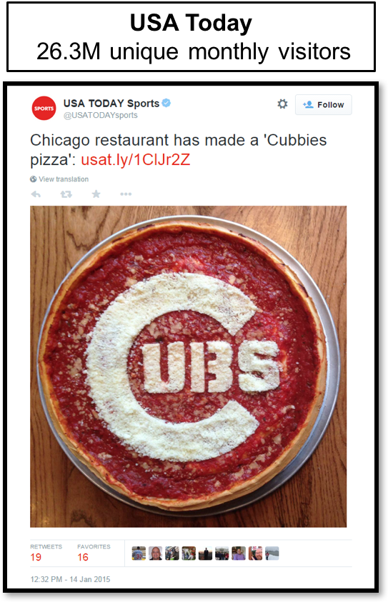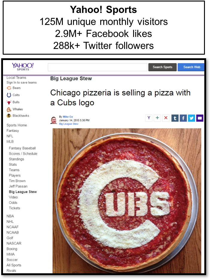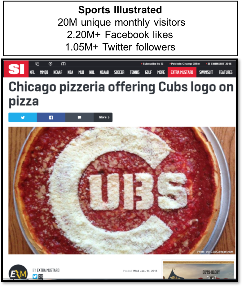 In result, the “Cubbie Pizza” garnered 120,839,067 media impressions.