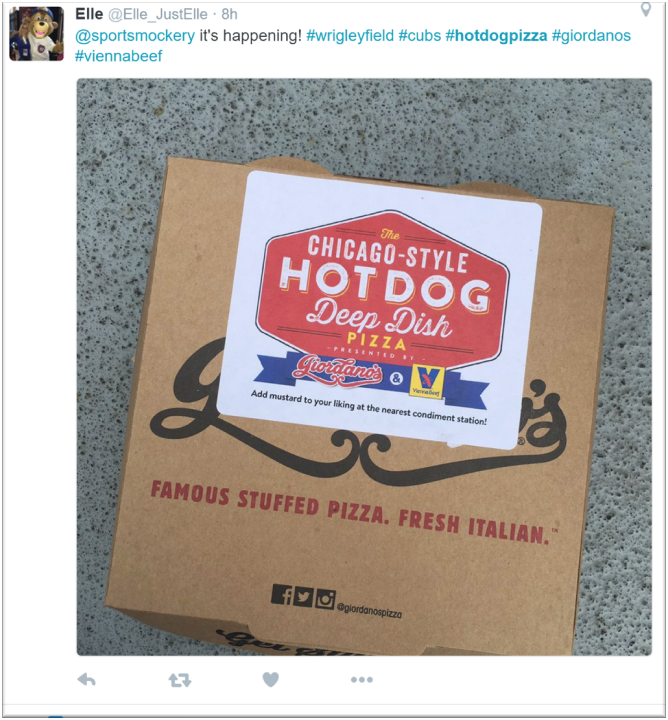For National Hot Dog Month, the Cubs teamed up with Vienna and Giordano’s to create a Deep Dish Hot Dog Pizza. The pizza was sold at select concessions from July 15th-July 20th