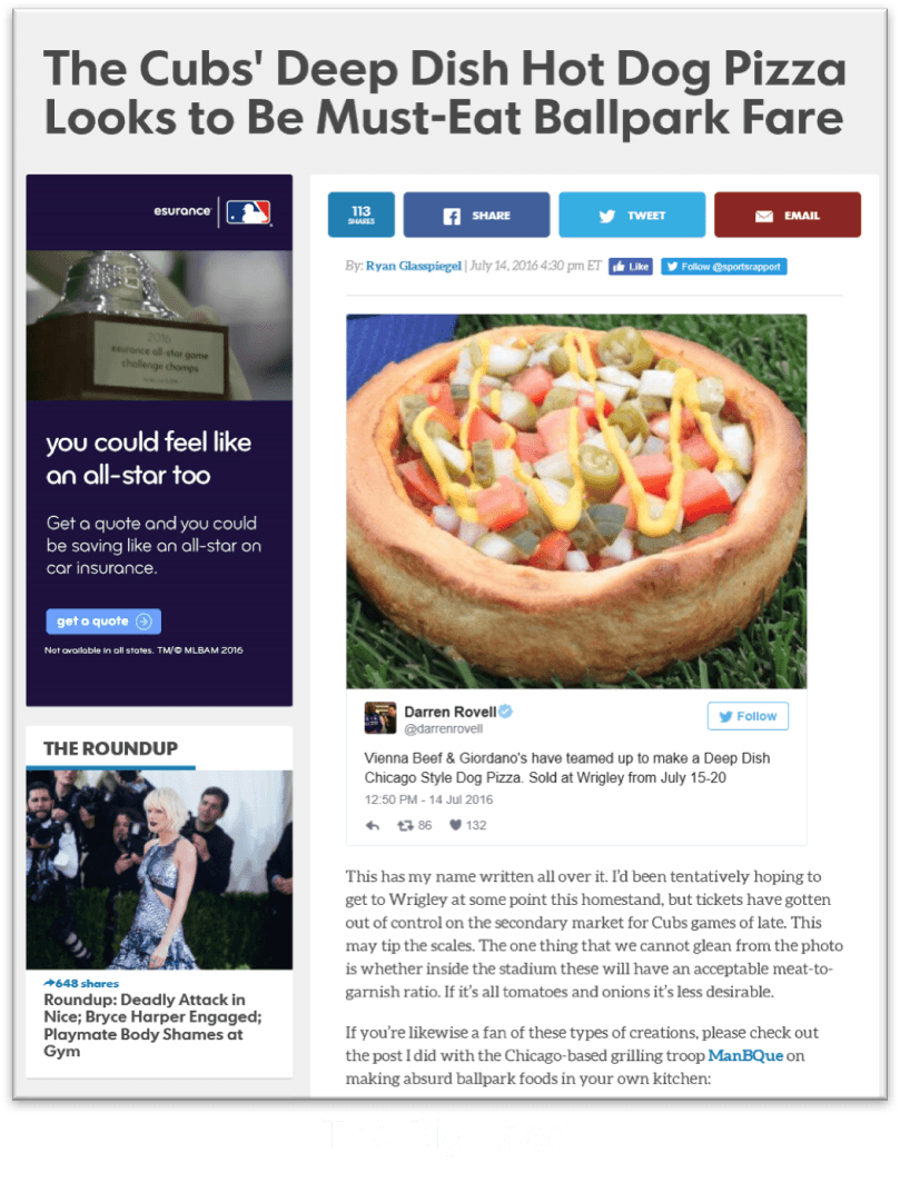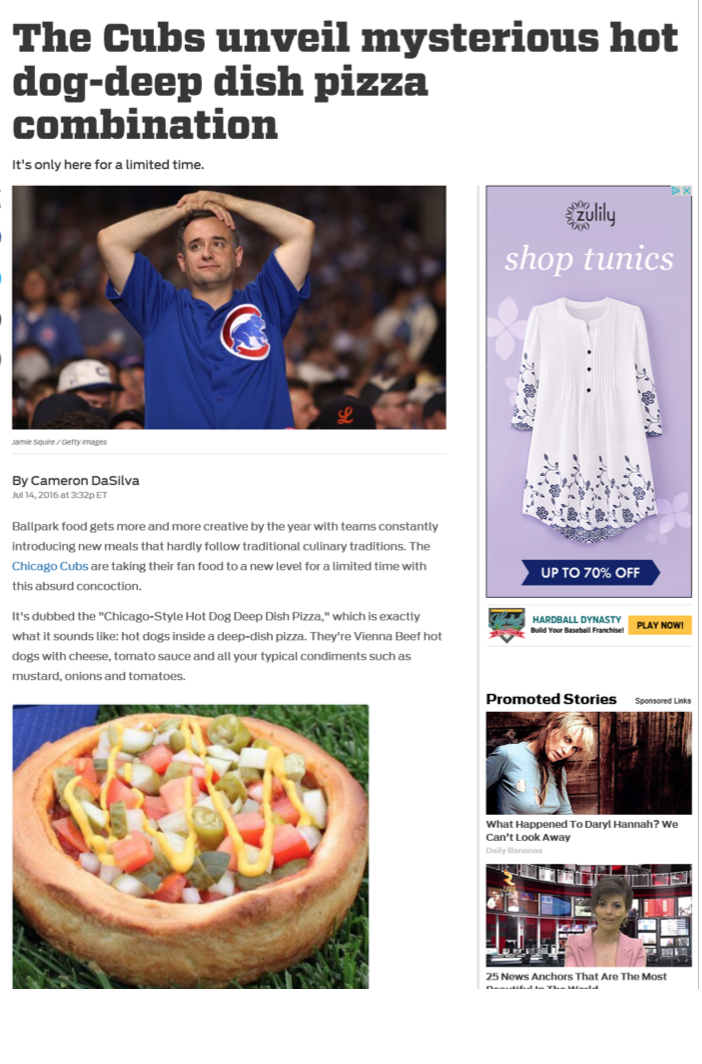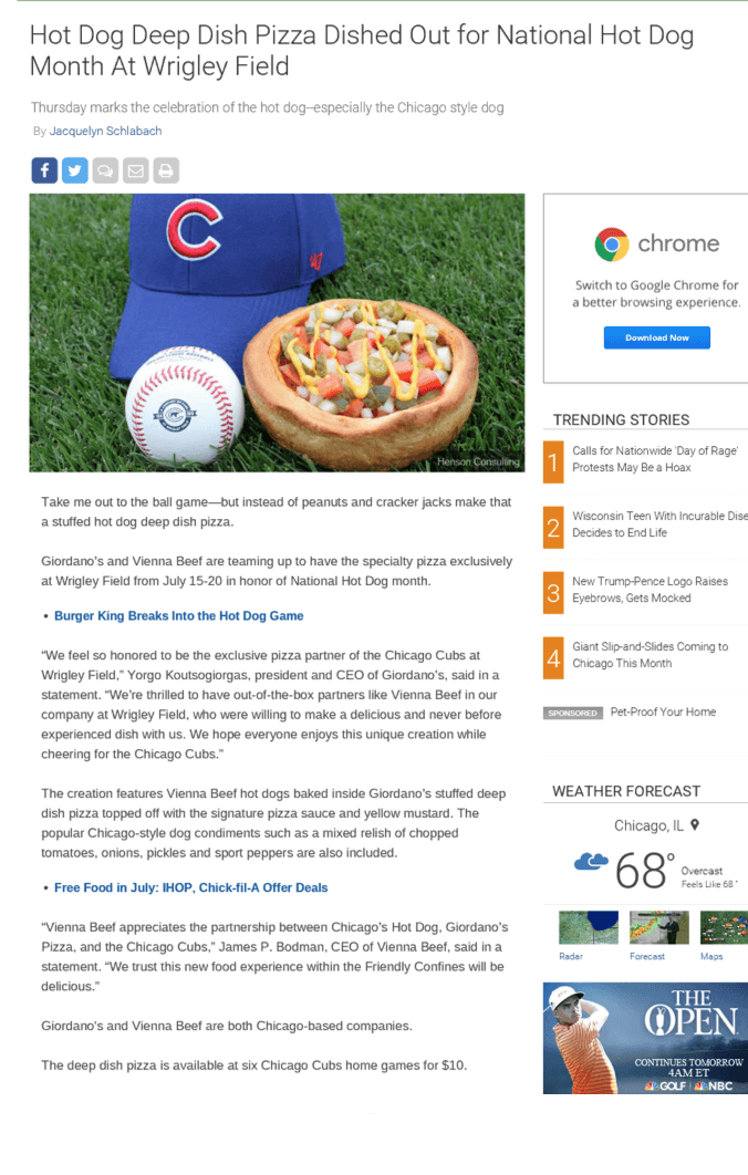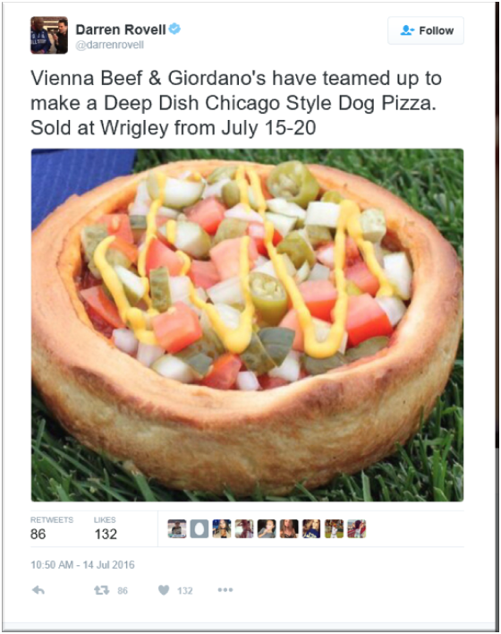 The Cubs showcased the Hot Dog Pizza on-air during the July 18th game.